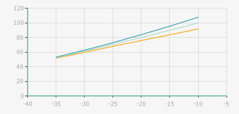 | 蒸發(fā)溫度 | 制冷量+/-5% | 能耗+/-5% | 現(xiàn)在能效+/-5% | 氣體流速+/-5% | 能效+/-7% | ||||