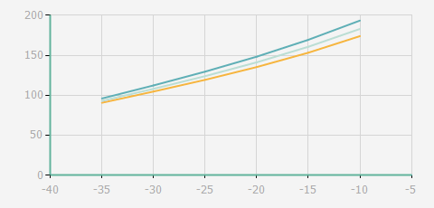 | 蒸發(fā)溫度 | 制冷量+/-5% | 能耗+/-5% | 現(xiàn)在能效+/-5% | 氣體流速+/-5% | 能效+/-7% | ||||