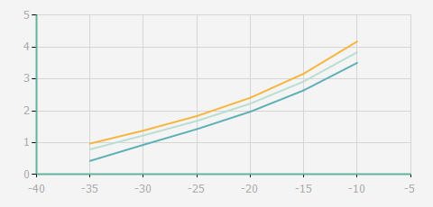 | 蒸發溫度 | 制冷量+/-5% | 能耗+/-5% | 現在能效+/-5% | 氣體流速+/-5% | 能效+/-7% | ||||