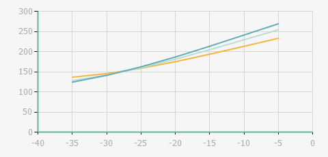 | 蒸發(fā)溫度 | 制冷量+/-5% | 能耗+/-5% | 現在能效+/-5% | 氣體流速+/-5% | 能效+/-7% | ||||