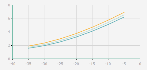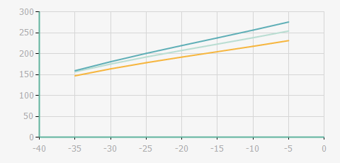 | 蒸發(fā)溫度 | 制冷量+/-5% | 能耗+/-5% | 現(xiàn)在能效+/-5% | 氣體流速+/-5% | 能效+/-7% | ||||