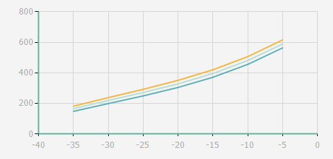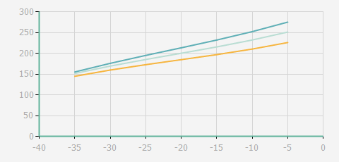 | 蒸發(fā)溫度 | 制冷量+/-5% | 能耗+/-5% | 現(xiàn)在能效+/-5% | 氣體流速+/-5% | 能效+/-7% | ||||