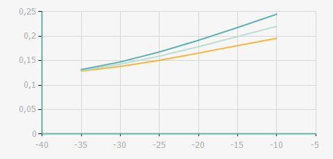 | 蒸發(fā)溫度 | 制冷量+/-5% | 能耗+/-5% | 現(xiàn)在能效+/-5% | 氣體流速+/-5% | 能效+/-7% | ||||