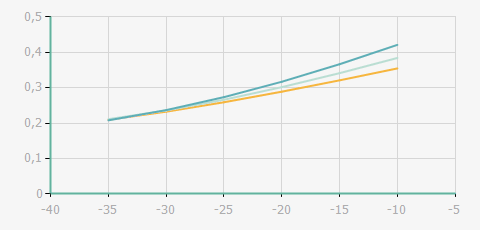 | 蒸發(fā)溫度 | 制冷量+/-5% | 能耗+/-5% | 現(xiàn)在能效+/-5% | 氣體流速+/-5% | 能效+/-7% | ||||